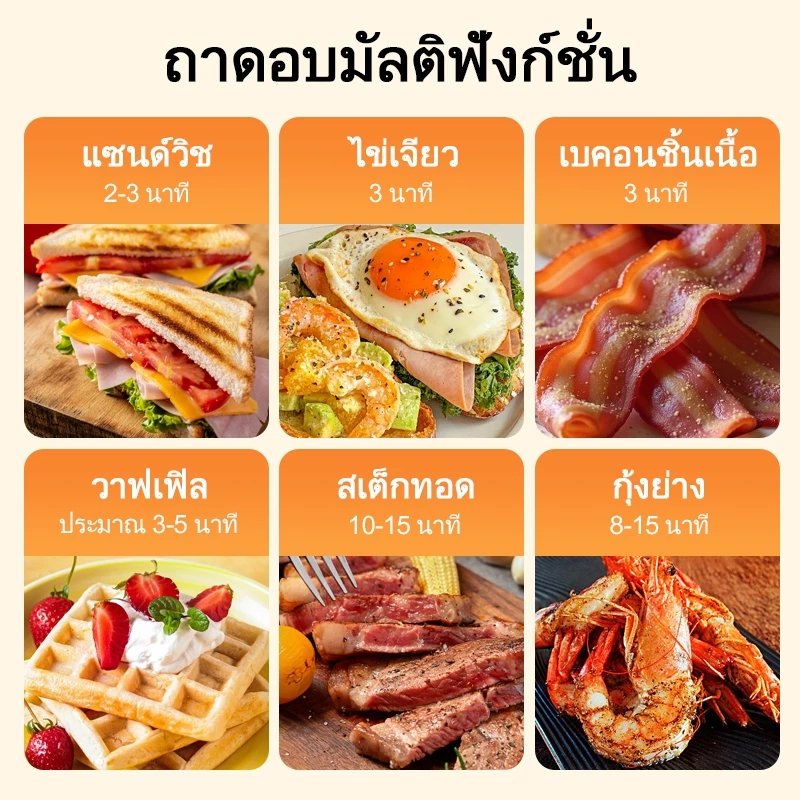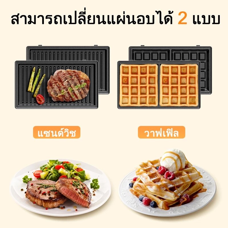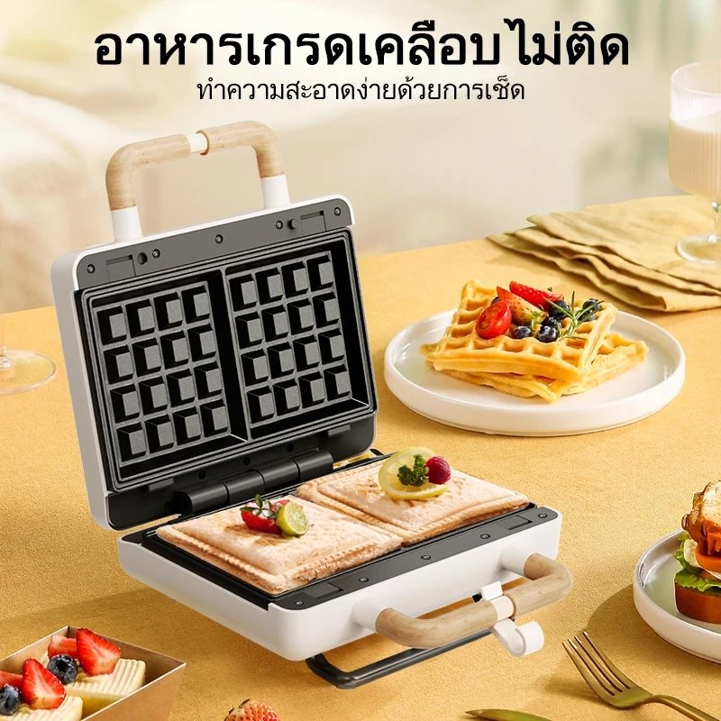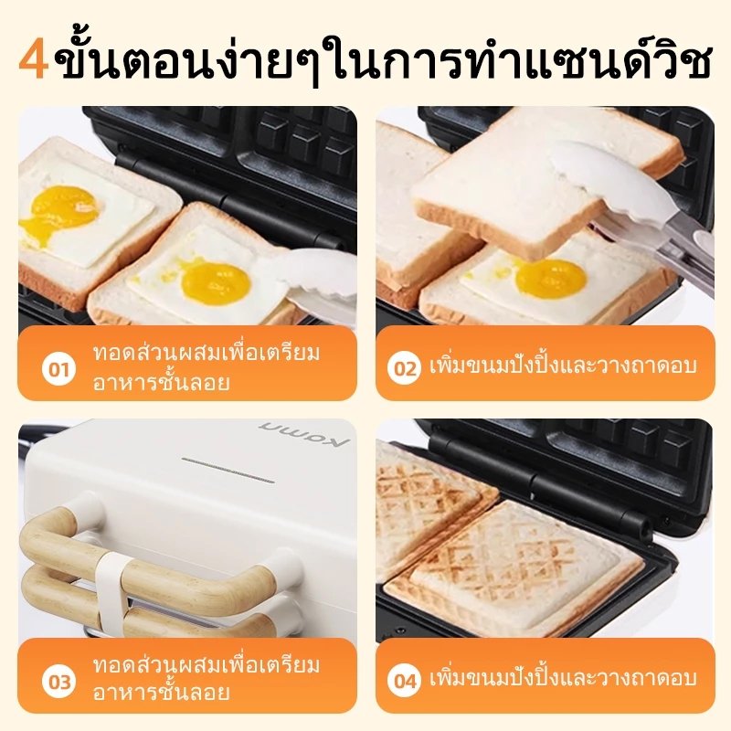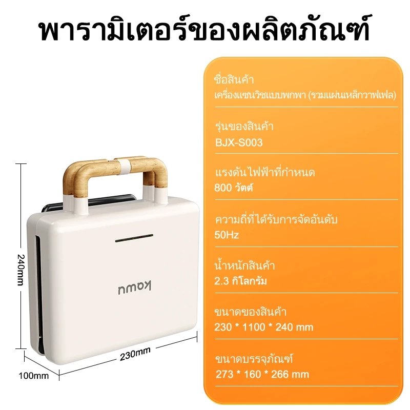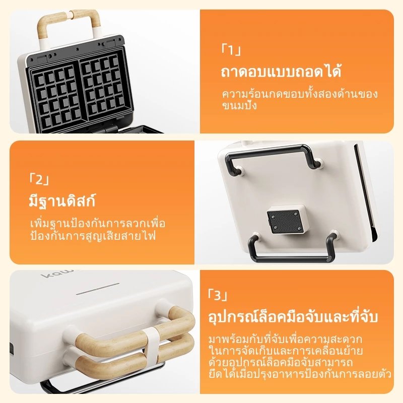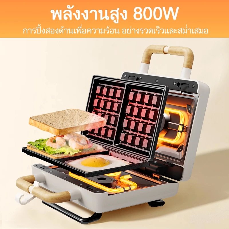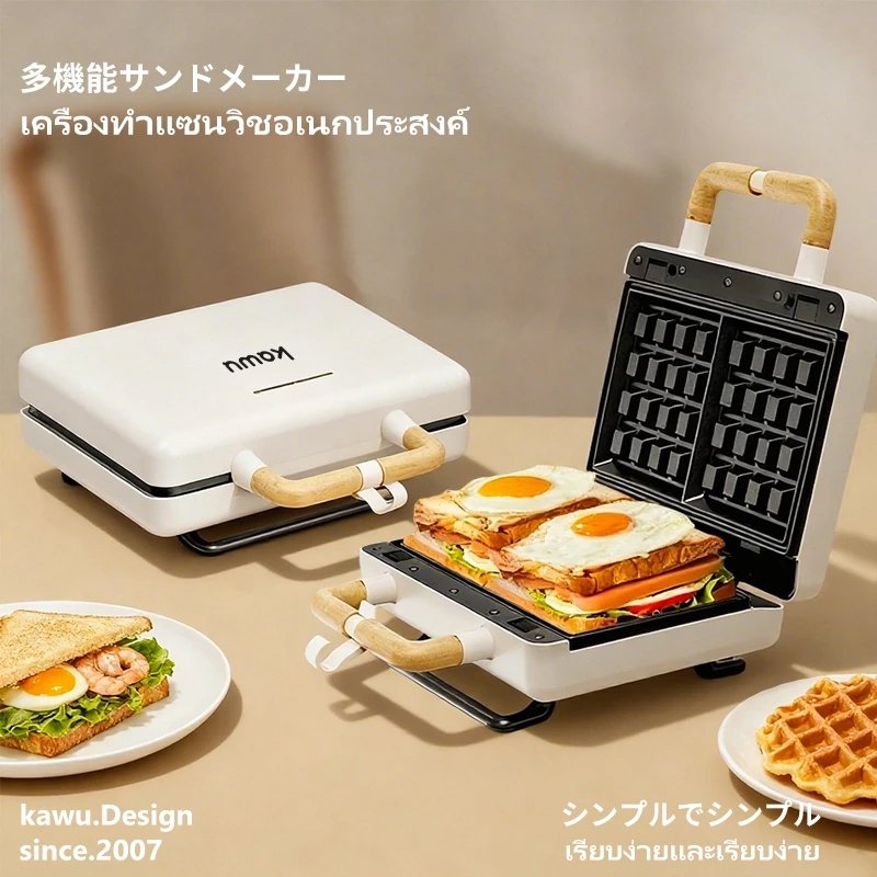 kawu เครื่องทำแซนวิชแบบพกพา อบด่วนสองด้าน 800w ไม่ติดกระทะ วาฟเฟิลอบ เครื่องทำอาหารเช้า