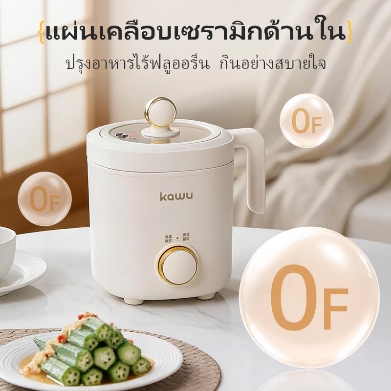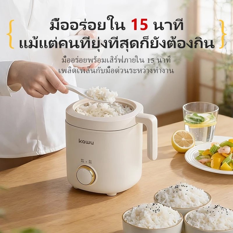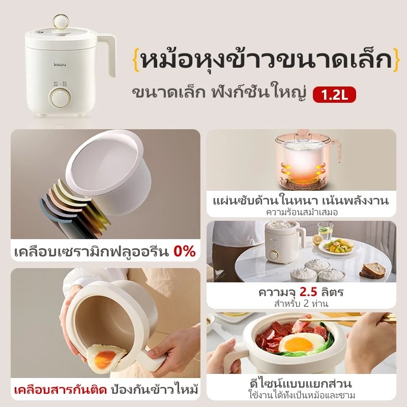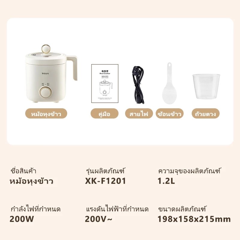KAWU Mini หม้อหุงข้าว หม้อปรุงอาหารด่วน 1.2Lทำความสะอาดง่าย 200Wประหยัดไฟหม้อไฟฟ้าอเนกประสงค์