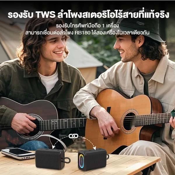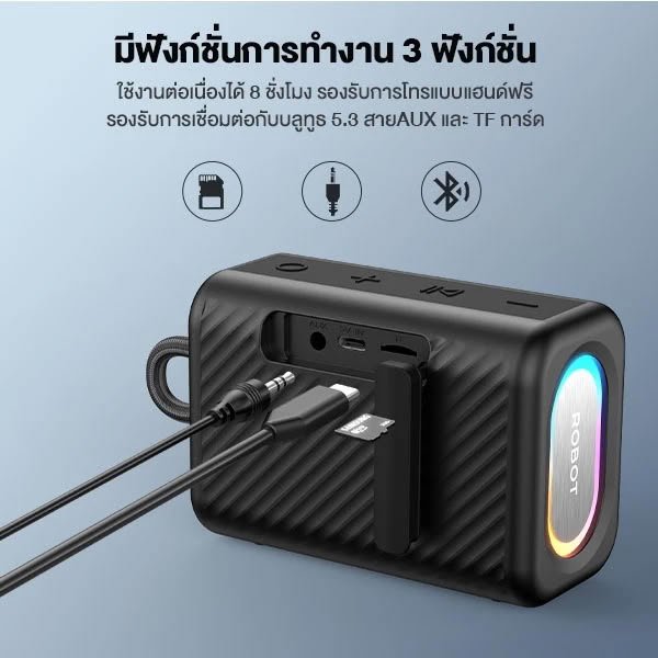 ROBOT ลำโพงบลูทูธ รุ่น RB180 5W ลำโพงRGB Speaker Bluetooth 5.3 รองรับเชื่อมต่อ 2 ตัว ลำโพงกันน้ำได้ ประกัน 1 ปี